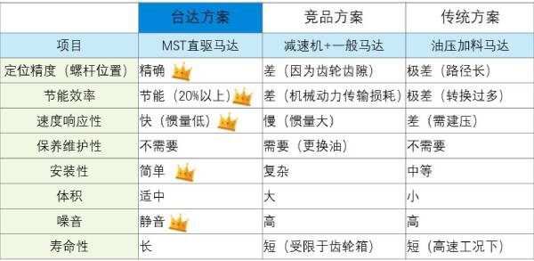 品質(zhì)提升:直驅(qū)帶動(dòng)負(fù)載,無背隙、精度條件佳,準(zhǔn)確控制熔膠量