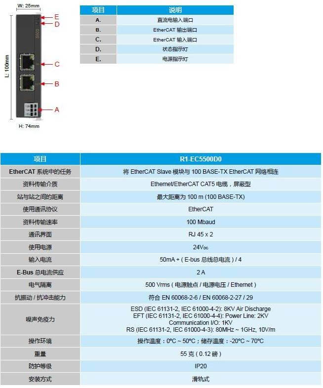 EtherCAT 集合式 E-BUS 電源模塊 - R1-EC5500D0